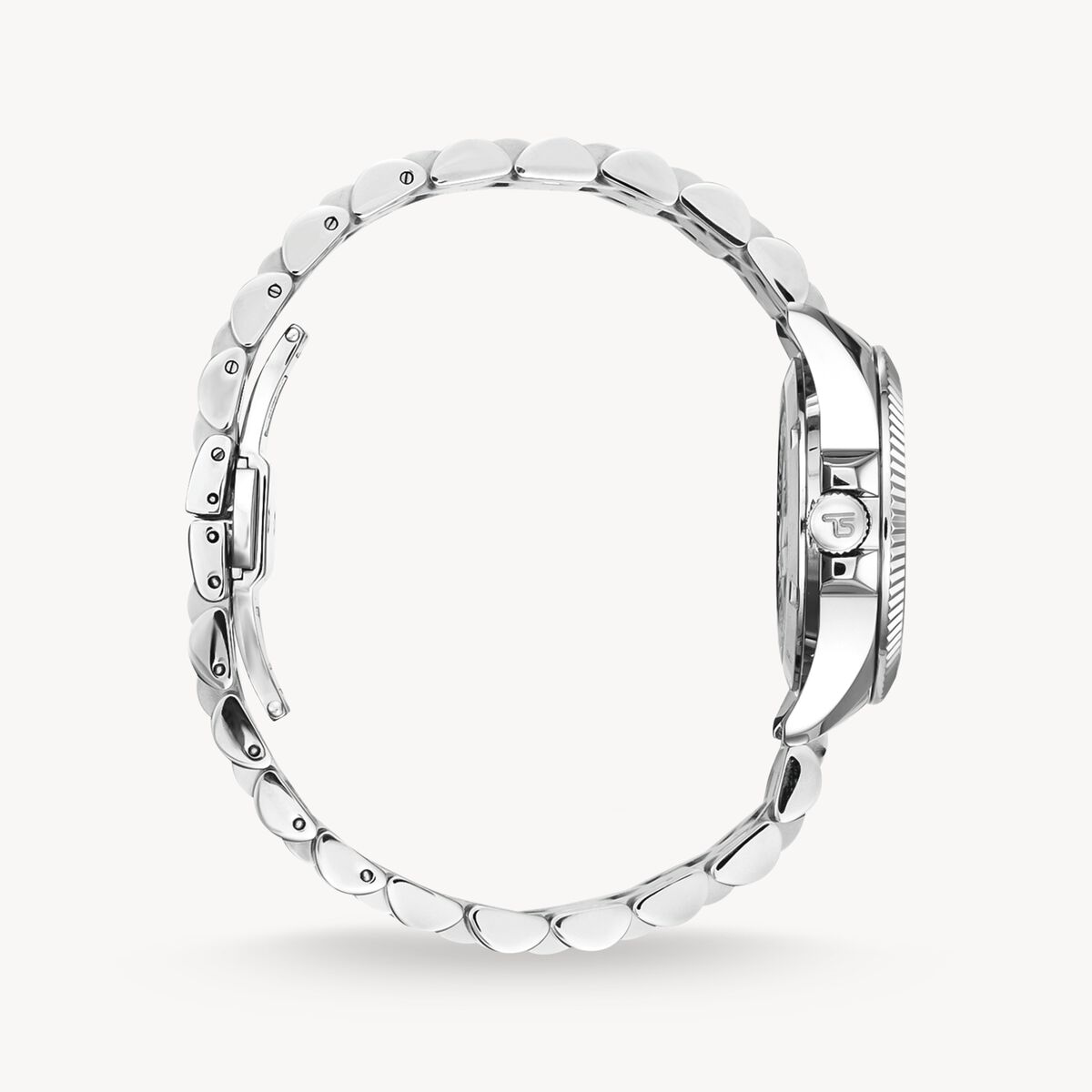 Klockan bärs på handleden med ett klassiskt, massivt armband i rostfritt stål, vars längd kan justeras genom att ta bort enskilda länkar.