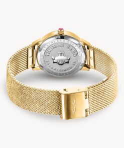 - Guldfärgad damklocka i rostfritt stål med mesh-armband med fina länkar