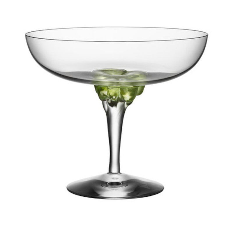 Åsa Jungnelius älskar glittret och de blanka hårda ytorna i glas. Det visar hon prov på i den läckra serien Sugar Dandy. Hela serien är handgjord och munblåst och Åsa Jungnelius numera klassiska signum i ”rinnande glas” märks på den spektakulära foten.