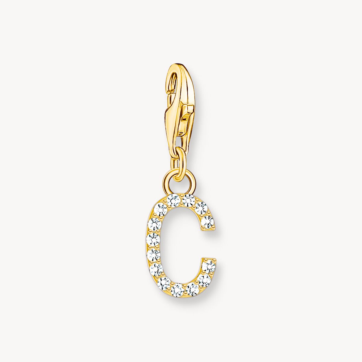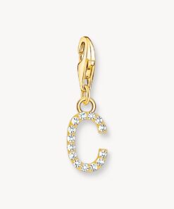 Charm-hängsmycke bokstaven C med vita stenar guldpläterad