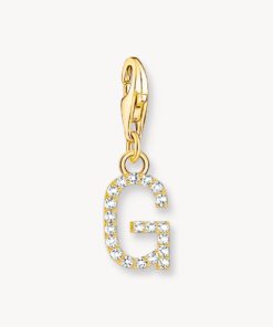 Thomas Sabo-Charm-hängsmycke bokstaven G med vita stenar guldpläterad