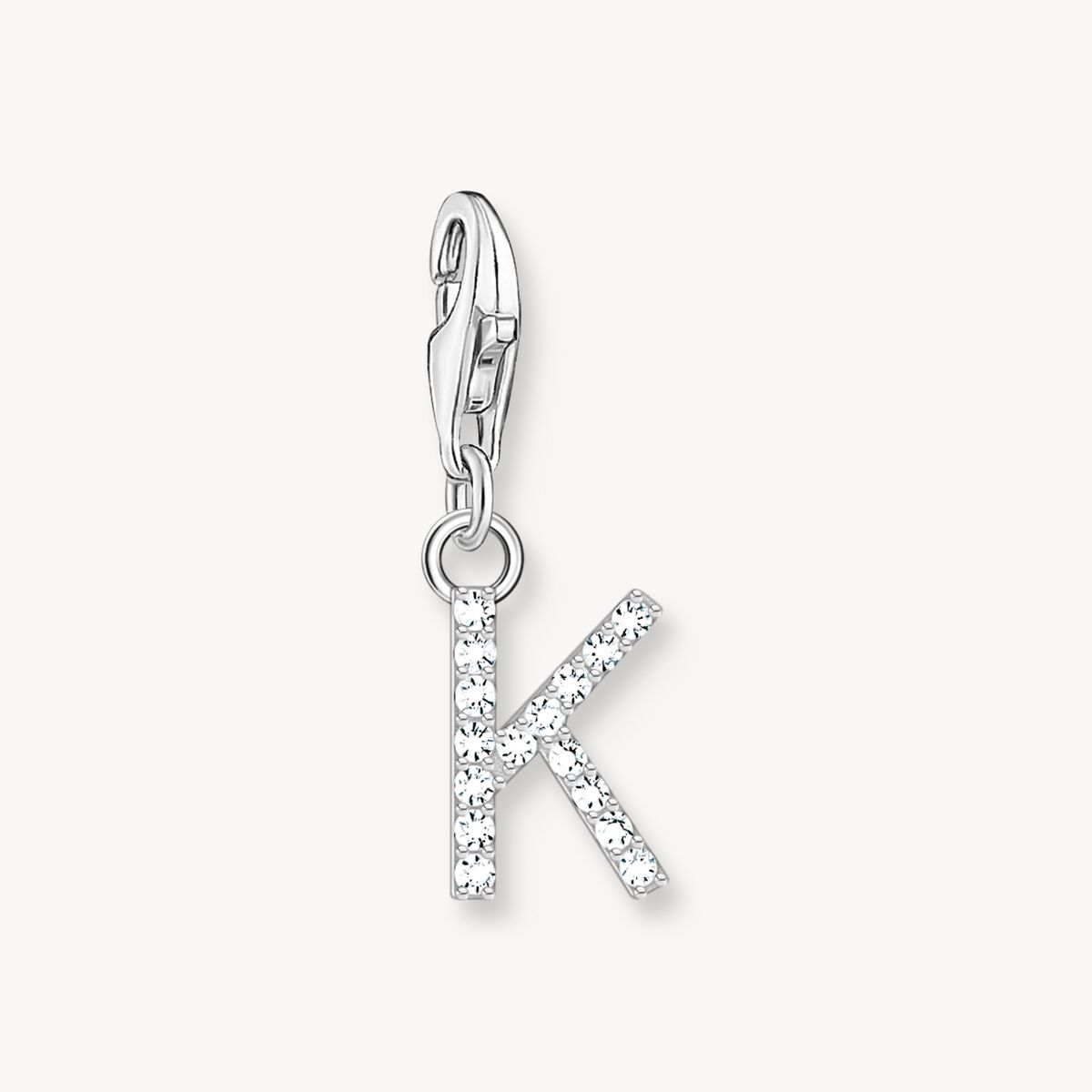 Charm-hängsmycke bokstaven K med vita stenar silver