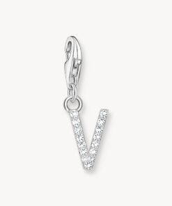 Gnistrande bokstav: Charm-hänget är tillverkat av exklusivt 925 sterlingsilver och designat i form av ett V. Det är handplacerat i pavéfattning med vita zirkoniastenar. Det ger stenarna vackra färgskiftningar.