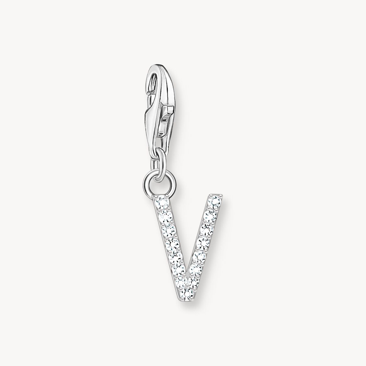 Charm-hängsmycke bokstaven V med vita stenar silver