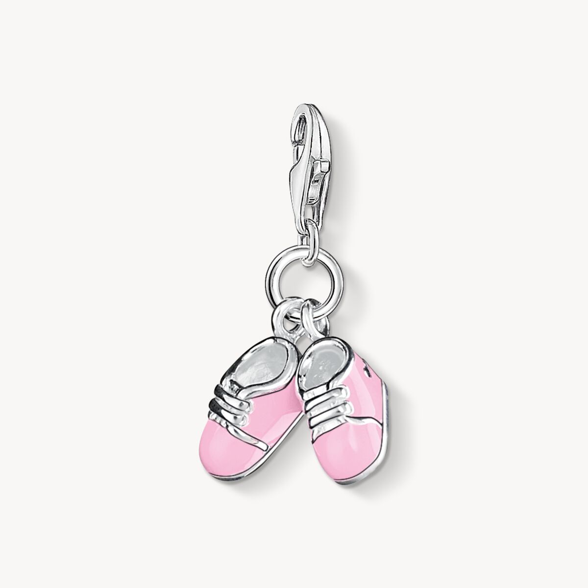 Denna Charm i 925 sterlingsilver är en mycket speciell present som minne av en pojkes födsel eller dop. Hängsmycket visar söta bebisskor i rosa. Charmens himmelsblå färg verkar lugnande och glad och står för en positiv uttryckskraft. De små miniatyr-sneakerserna gör genast ett starkt intryck och är separata eller i kombination med andra Charms som sparkdräkt, Best-Mum-hjärta eller barnvagn en absolut ögonfångare. De kan fästas på ett halsband eller ett berlockarmband tack vare karbinhaken och påminner på så sätt om det speciella ögonblick när födseln ägde rum.